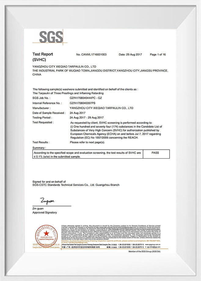 تشمل محفظة منتجات الشركة PVC Tabaulin ، قماش ، أغلفة الشاحنات ، أغطية واقية ، أغطية مقطورة ، ستائر جانبية الحاويات ، أغطية السقف ، حاوية. مع التزام ثابت بالجودة ، حصلت الشركة على ثقة العملاء في جميع أنحاء العالم ، حيث تخدم الأسواق الرئيسية في أوروبا والولايات المتحدة الأمريكية وأوقيانوسيا وأفريقيا وآسيا وما بعدها. بالإضافة إلى ذلك ، حصلت الشركة على العديد من الشهادات الدولية ، مما زاد من ترسيخ سمعتها كرائدة في الصناعة موثوقة ومبتكرة.